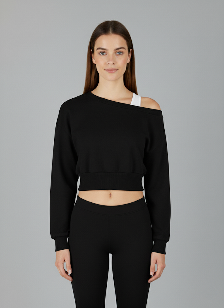 "Minimalist Şıklık" | Omuz Dekolteli, Rahat Kesim Crop Sweatshirt