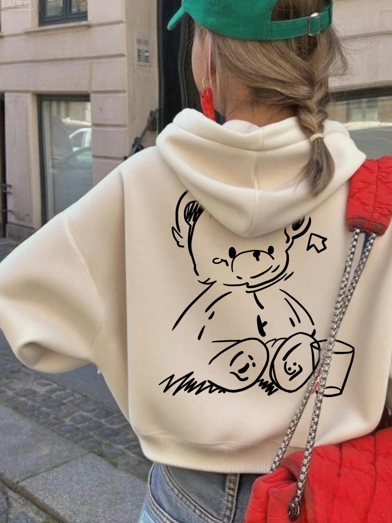 ✨ Benzersiz Tasarım: Sırtındaki minimalist ayıcık çizimi, sweatshirt'e modern ve sevimli bir hava katıyor.